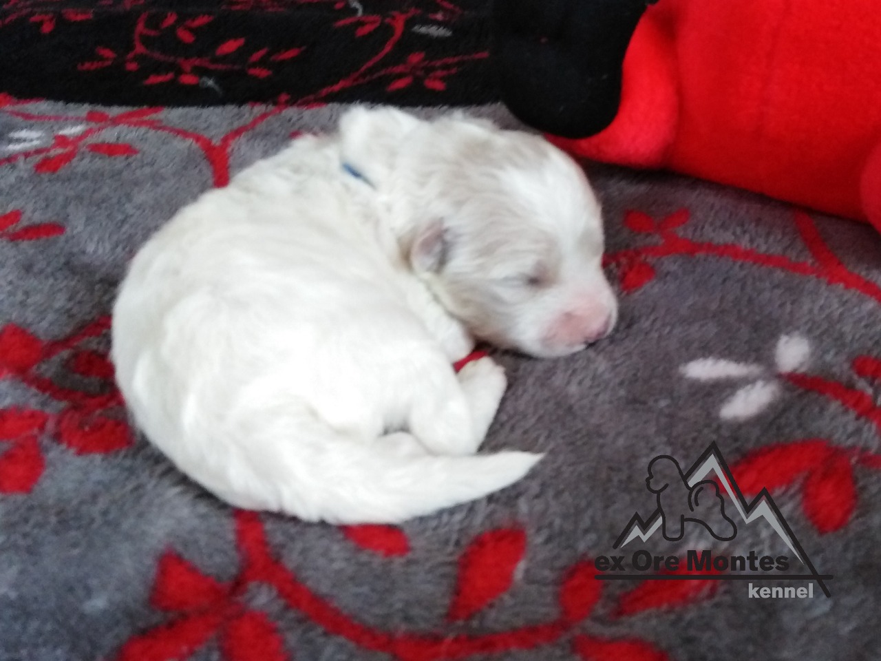 Fantastický pes, v kompaktním těle, vynikající perfektním formátem těla, je mimořádně milý a vstřícný, zdědil perfektní zaúhlení obou párů končetin, dlouhý paralelní krok a fantastické osrstění ocasu po svém otci. Má pevnou a silnou kostru, krásnou a hustou srst.