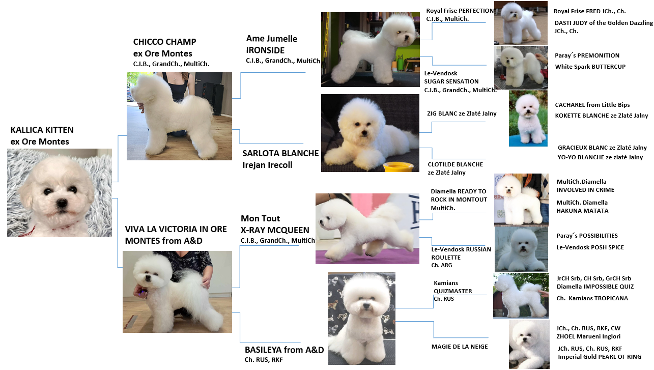 otec: C.I.B, GrandCh., MultiCh. CHICCO CHAMP ex Ore Montes (chov. Tereza Weilguny, maj. Tereza a Kateřina Pučelíkových)